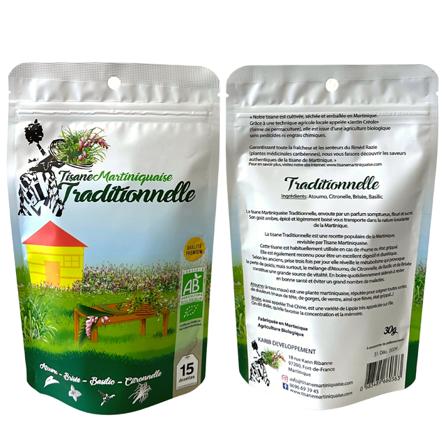 La Tisane Martiniquaise Traditionnelle est un mélange naturel inspiré par des plantes locales de la Martinique, élaborée avec son soin pour offrir une expérience gustative unique.